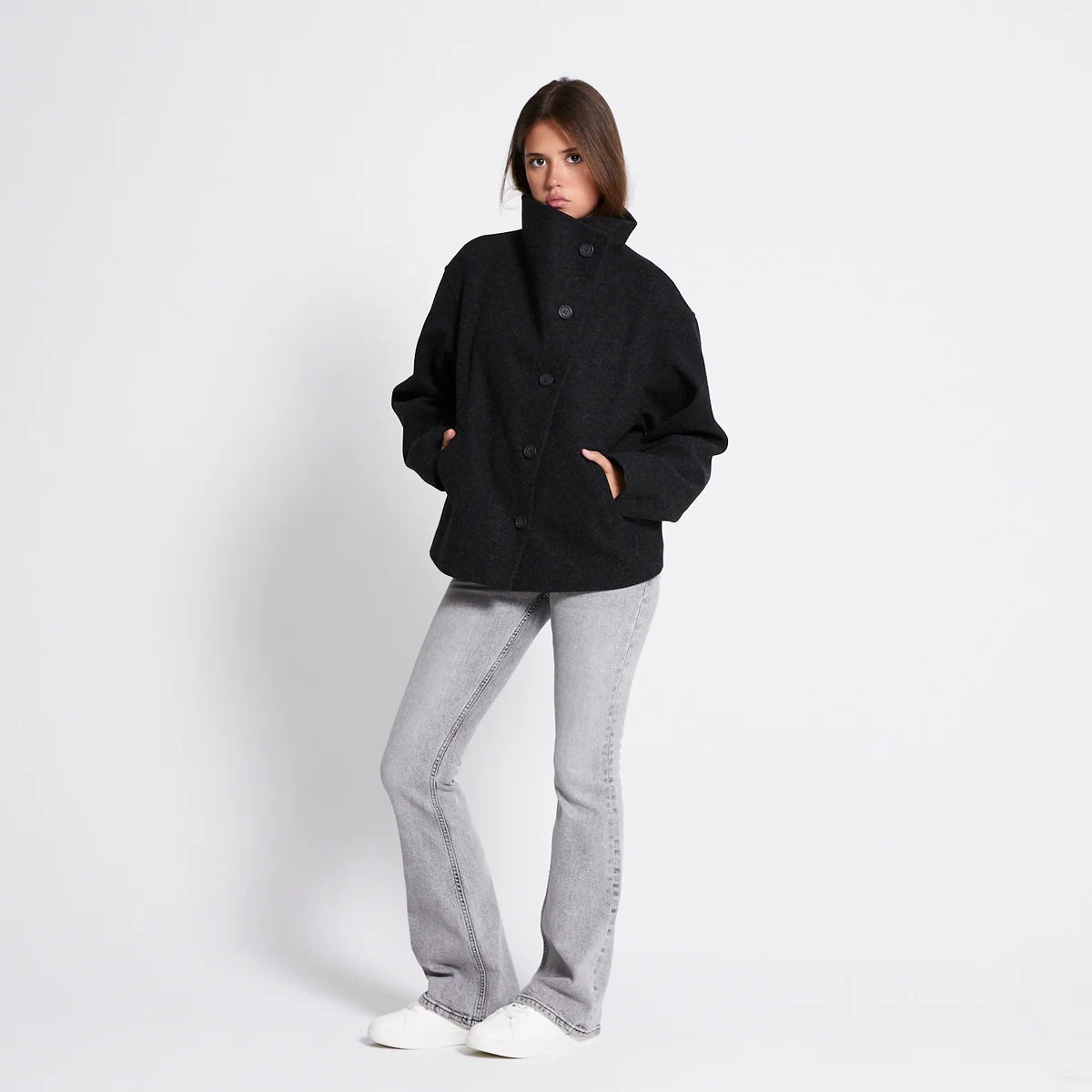 Limited stock available — elevate your everyday elegance with the effortlessly chic Noelia Wool-Effect Jacket today.